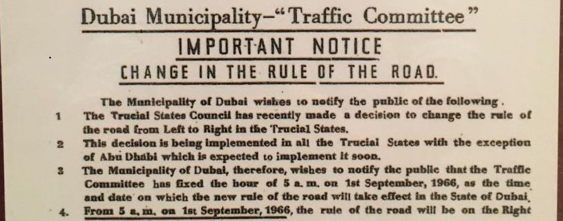В сентябре 1966 года, Дубай перешёл с левостороннего на правостороннее движение