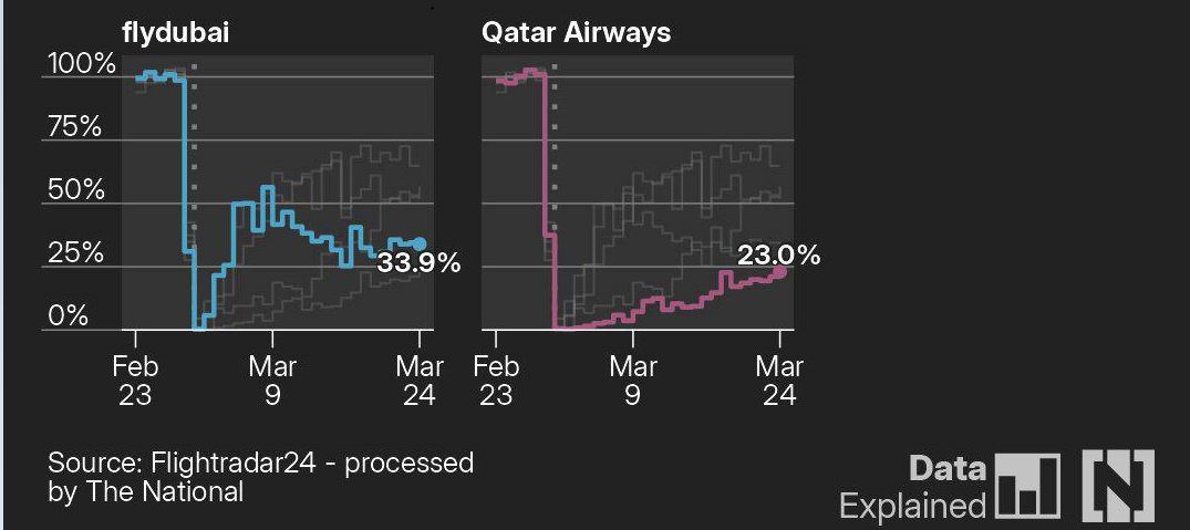 Авиакомпании стран Персидского залива постепенно восстанавливают количество рейсов после ограничений воздушного пространства