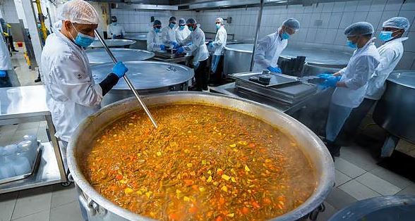 Масштабы ежедневной готовки поражают: только за один день здесь расходуют 30 000 кг курицы, 15 000 кг баранины и риса, 15 000 кг овощей, 2 500 кг дала, 750 кг специй и 130 литров масла. Чтобы справиться с такой колоссальной задачей, в процессе задействованы более 2 000 человек и 150 грузовиков — слаженная работа этой большой команды позволяет бесперебойно обеспечивать питанием всех желающих.