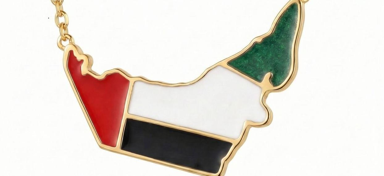 В ОАЭ зафиксирован резкий рост спроса на оригинальное ювелирное украшение — ожерелье, выполненное в форме карты страны и окрашенное в цвета национального флага.